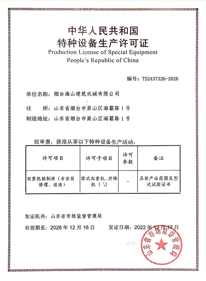 2022年度海山機械的建筑業(yè)企業(yè)資質(zhì)許可證書,以及特種設(shè)備生產(chǎn)許可證書均通過審批,具體如下圖: